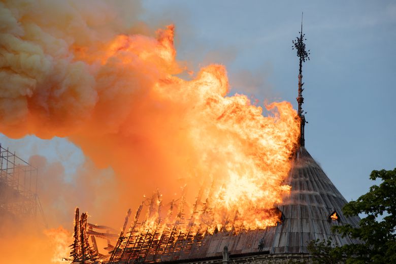 2019年4月15日,巴黎时间18时50分,巴黎圣母院起火,其火力空前,整个800年前用实木建成的屋顶及19世纪修复时建造的“剑塔”毁于火焰